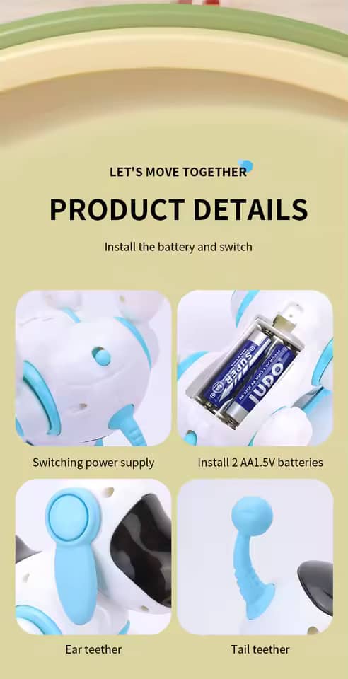The Interactive Walking Robotic Dog is designed to engage and motivate babies to crawl. With a simulated walking feature, the dog moves forward to attract attention and encourage babies to follow, helping them develop motor skills and coordination. It also barks playfully, adding extra fun to the learning process. A perfect toy to inspire curiosity and activity for your little one.
