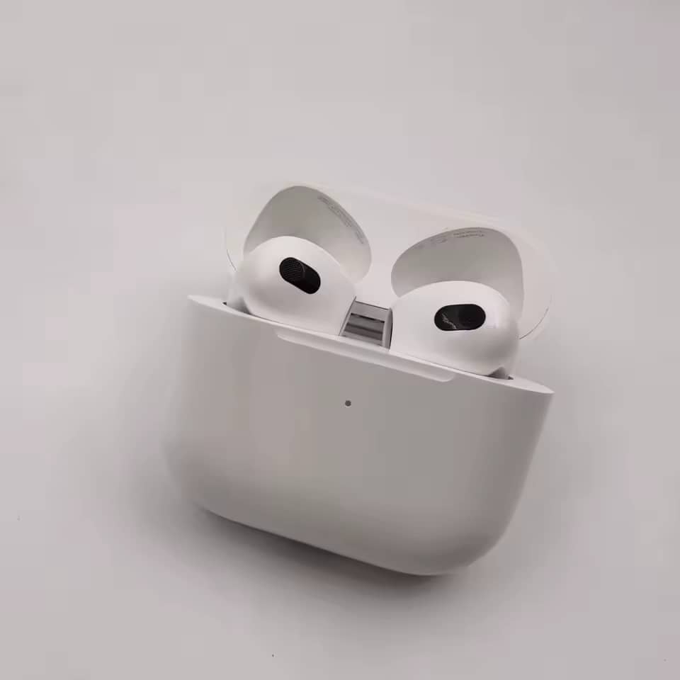 Enjoy high-quality sound and seamless connectivity with these sleek wireless earbuds and their portable charging case.
